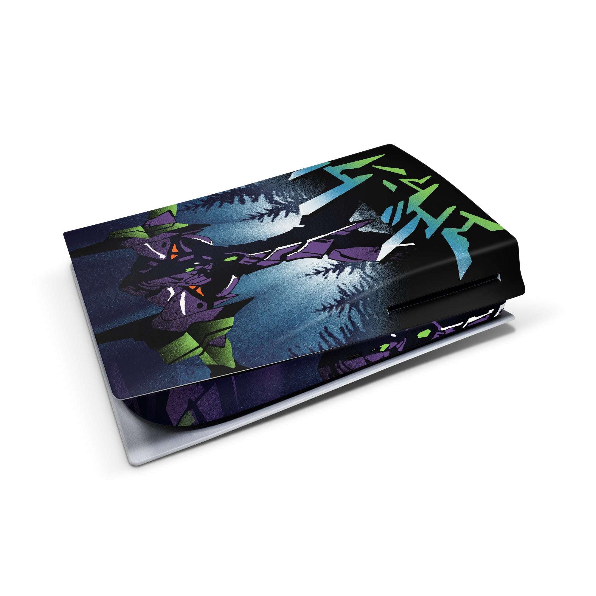 Level up your PS5 or PS5 Slim with Evangelion, featuring original art by Dandingeroz inspired by the popular anime series! GameVinyl console skins for PlayStation 5 are made in the USA and protect your console from scratches, dust and stains while making it look absolutely awesome.