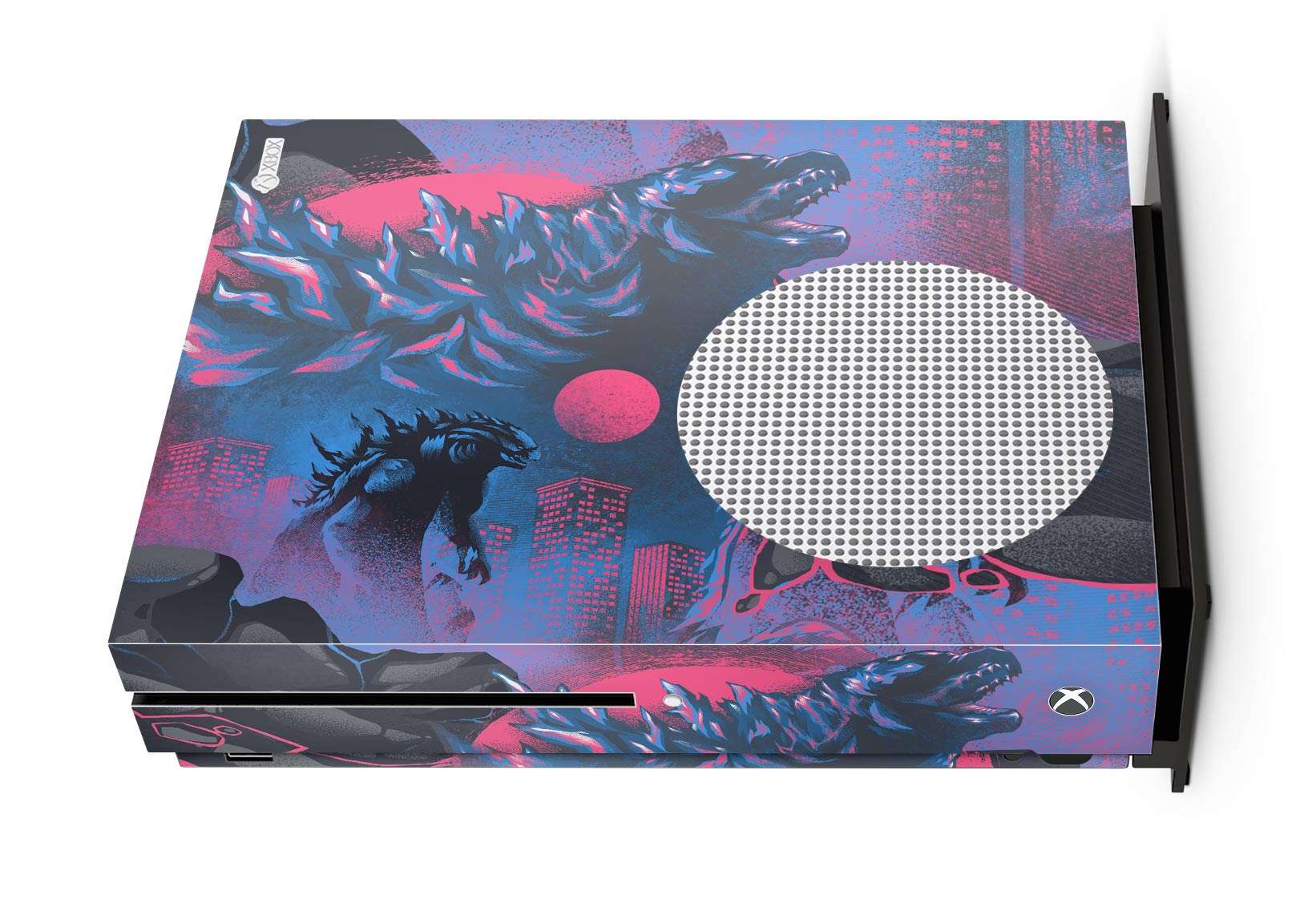 Level up your Microsoft Xbox One S console with Zilla, featuring original art by the talented Hyper Twenty. GameVinyl console wraps, covers and stickers for Xbox One S are made in the USA and protect your console from scratches, dust and stains while making it look absolutely awesome.
