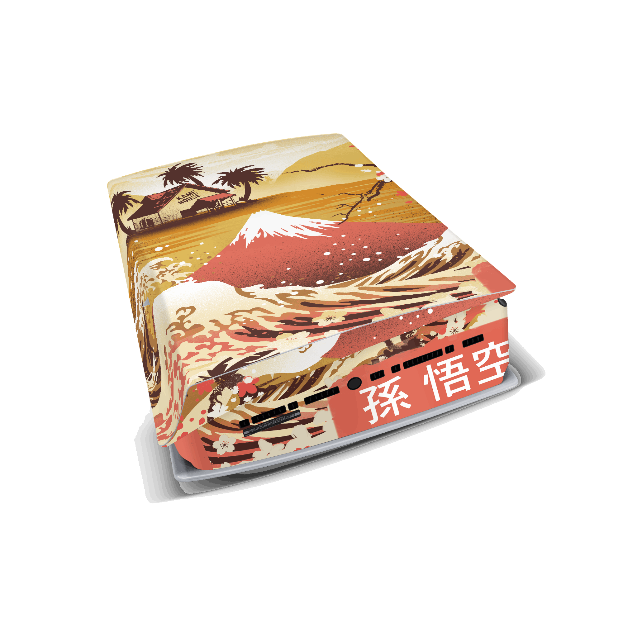 Designed by the talented Dandingeroz, this PS5 console skin features Goku with a Ukiyo twist! GameVinyl console wraps for Sony PlayStation 5 are made in the USA and protect your PS5 Pro, PS5 Slim Disc, PS5 Slim Digital, PS5 Disc or PS5 Digital console from scratches, dust and stains while making it look absolutely awesome.